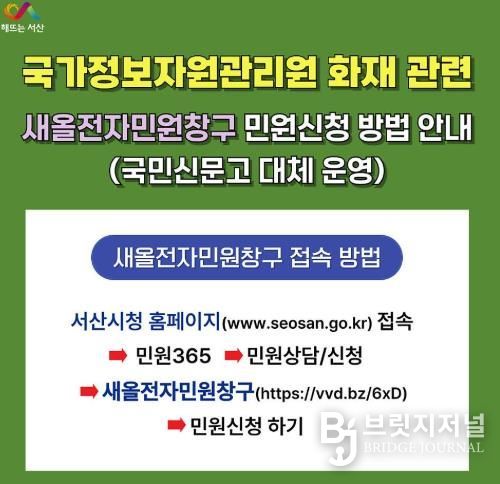 브릿지저널 정보영 기자 | 충남 서산시가 국민신문고 서비스의 일시 중단에 따른 시민 불편 최소화에 나섰다.