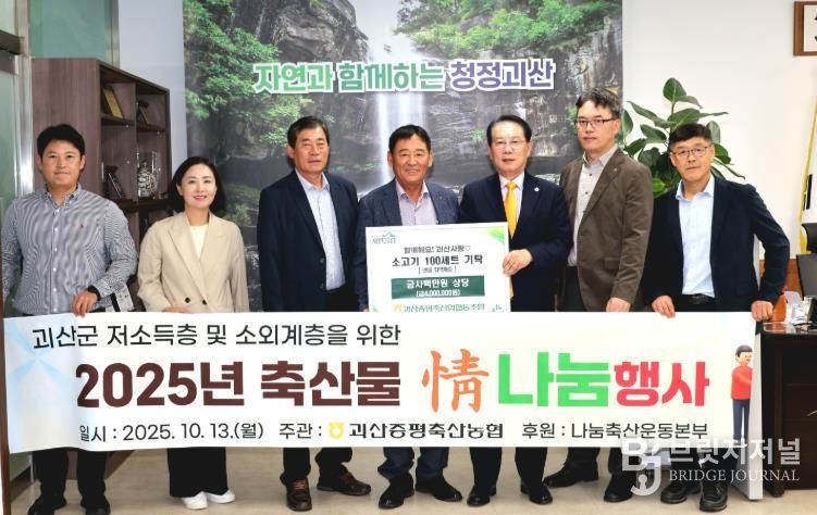 브릿지저널 김경미 기자 | 충청북도 괴산군은 13일 괴산증평축산업협동조합이 괴산군청을 방문해 소고기 100세트(400만 원 상당)를 기탁했다고 밝혔다.