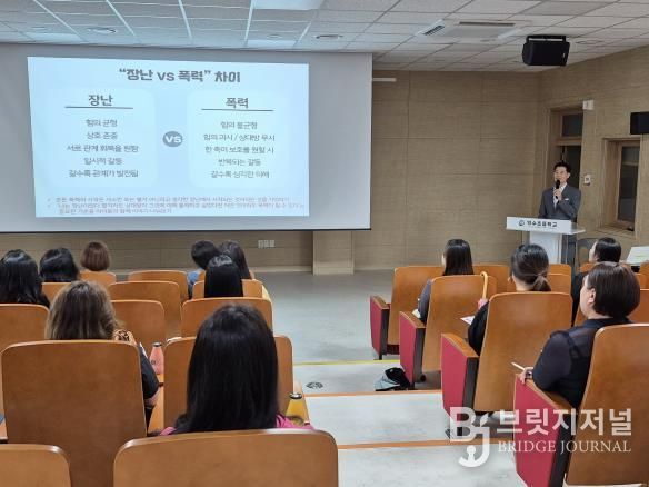 브릿지저널 윤나영 기자 | 울산 강북교육지원청은 13일 약수초등학교에서 학부모와 교원을 대상으로 ‘학교폭력 제로 현장 연수’를 진행했다.