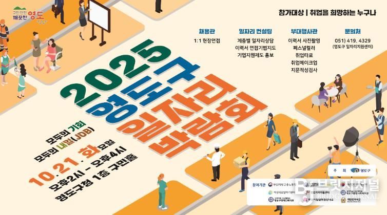 브릿지저널 윤나영 기자 | 부산 영도구는 구직자와 기업 간 만남의 장을 마련하고 다양한 취업 기회를 제공하기 위해 오는 10월 21일 오후 2시부터 4시까지 영도구청 1층 구민홀에서 ‘2025년 영도구 일자리박람회’를 개최한다고 밝혔다.