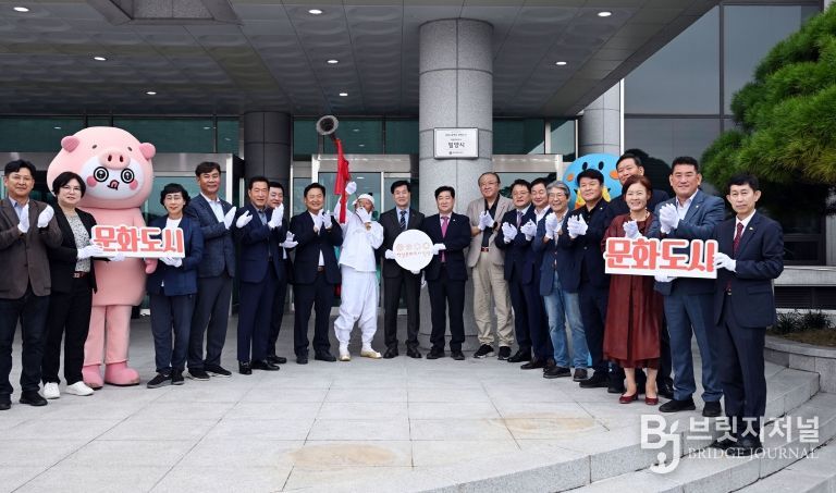 브릿지저널 김경미 기자 | 경남 밀양시는 13일 시청 중앙현관에서 밀양시, 밀양시의회, 문화도시센터 등 관계자 20여 명이 참석한 가운데 ‘2025 올해의 문화도시’ 현판 제막식을 개최했다고 밝혔다.