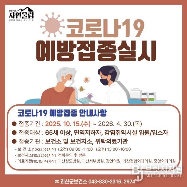 브릿지저널 김경미 기자 | 충북 괴산군은 2025-2026절기 코로나19 예방접종을 15일부터 실시한다고 밝혔다.