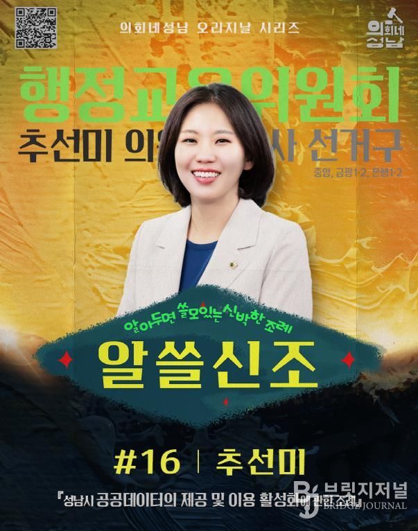 브릿지저널 김경미 기자 | 성남시의회는 ‘알쓸신조-추선미 의원 편’영상을 10월15일 17시 시의회 공식 SNS에 게시한다.