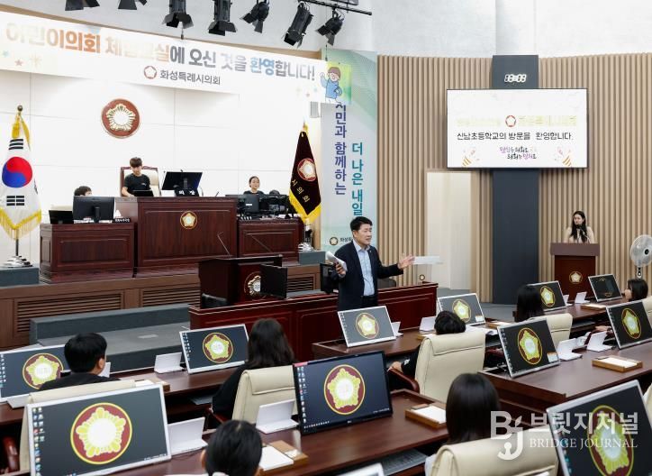 브릿지저널 김경미 기자 | 화성특례시의회는 13일, 남양읍에 위치한 신남초등학교 학생들을 대상으로 ‘어린이의회 체험 교실’을 운영했다.