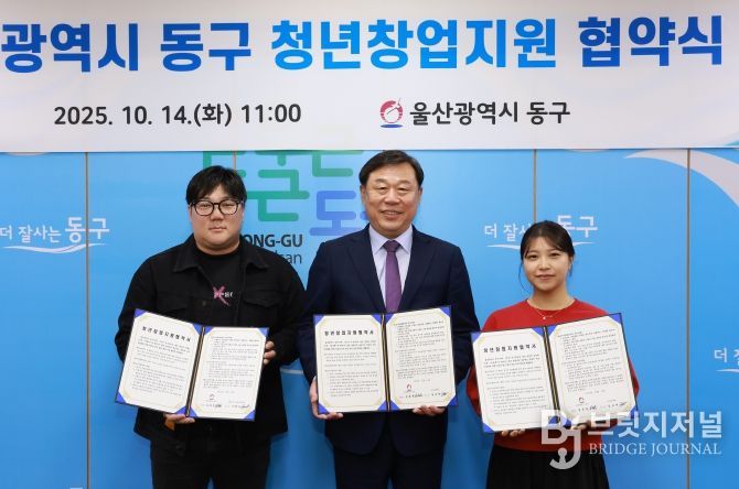브릿지저널 윤나영 기자 | 울산 동구는 10월 14일 오전 11시 동구청에서 ‘2025년 청년창업 Start Up' 선정자인 ’모아라면땅‘ 김보예 대표와 ’보컬라운지 실용음악학원‘ 이형도 대표를 대상으로 창업지원금 지원 협약식을 개최했다.