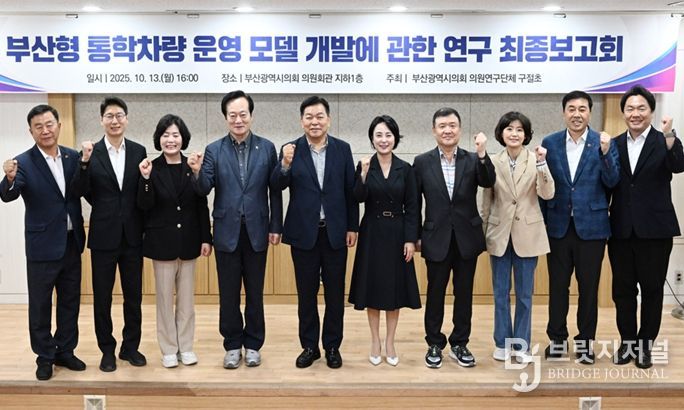 브릿지저널 윤나영 기자 | 부산광역시의회 의원연구단체 ‘구절초’(대표 강철호 의원)는 10월 13일에 『부산형 통학차량 운영 모델 개발에 관한 연구』용역 최종보고회를 개최하고, 부산의 지형과 통학 현실을 반영한 실행 가능한 운영 모델을 제안했다.