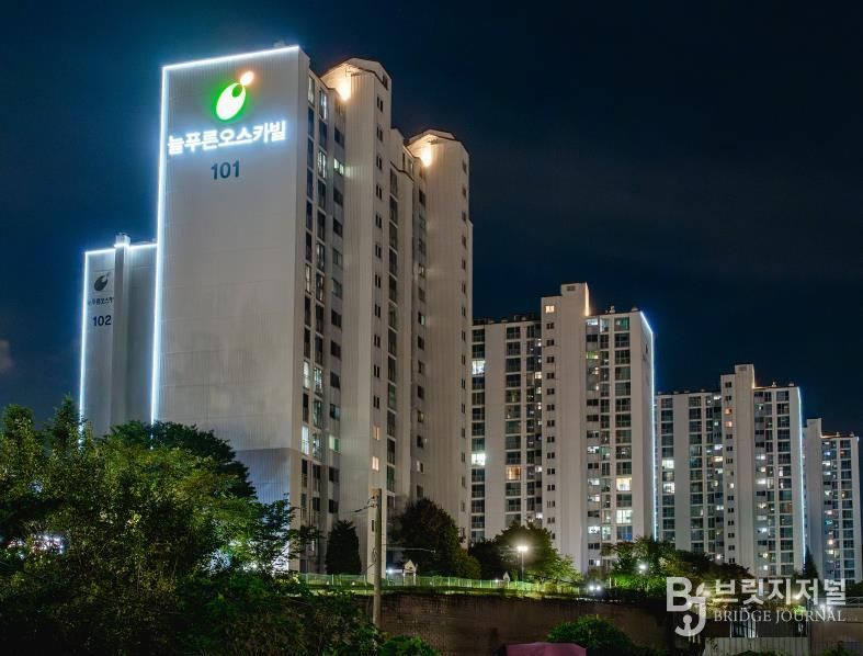 브릿지저널 김경미 기자 | 오산시 관내 아파트(공동주택) 단지들이 오색찬란한 빛으로 물들고 있다.