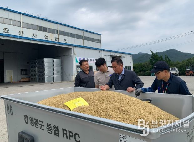 브릿지저널 김경미 기자 | 영광군의회 장영진 의원은 최근 벼 수확철을 맞아 영광 관내 농협 종합미곡처리장(RPC)을 방문해 한 해 동안 구슬땀을 흘린 농민들에게 감사의 마음을 전하고 수매 현장을 점검했다.