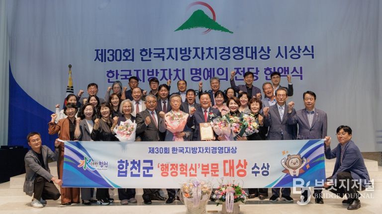 브릿지저널 김경미 기자 | 경남 합천군는 10월 14일 서울 공군호텔에서 개최된 제30회 한국지방자치경영대상 시상식에서 ‘행정혁신 부문 대상’을 수상했다.