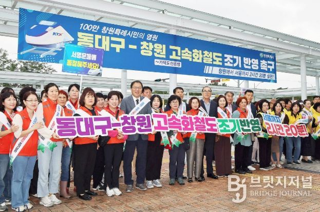 브릿지저널 김경미 기자 | 창원특례시는 14일 창원중앙역에서 KTX 이용객을 대상으로 ‘동대구-창원 고속화철도’의 제5차 국가철도망 계획 반영을 촉구하는 캠페인을 실시했다.