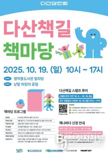 브릿지저널 김경미 기자 | 남양주시 다산동 소재 정약용도서관 앞마당과 낟알 어린이 공원에서 오는 19일 “다산책길 책마당” 행사가 열린다.
