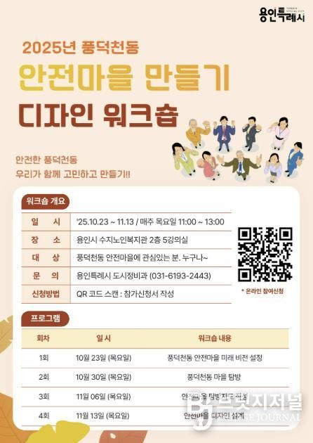 브릿지저널 김경미 기자 | 용인특례시는 수지구 풍덕천동 ‘안전마을 만들기 디자인 워크숍’ 참가자를 모집 중이라고 15일 밝혔다.
