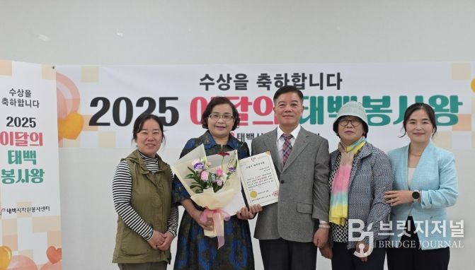 브릿지저널 윤나영 기자 | 태백시자원봉사센터는 ‘9월 이달의 태백 봉사왕’으로 예순해 씨를 선정하고, 지난 29일 시상식을 진행했다고 밝혔다.