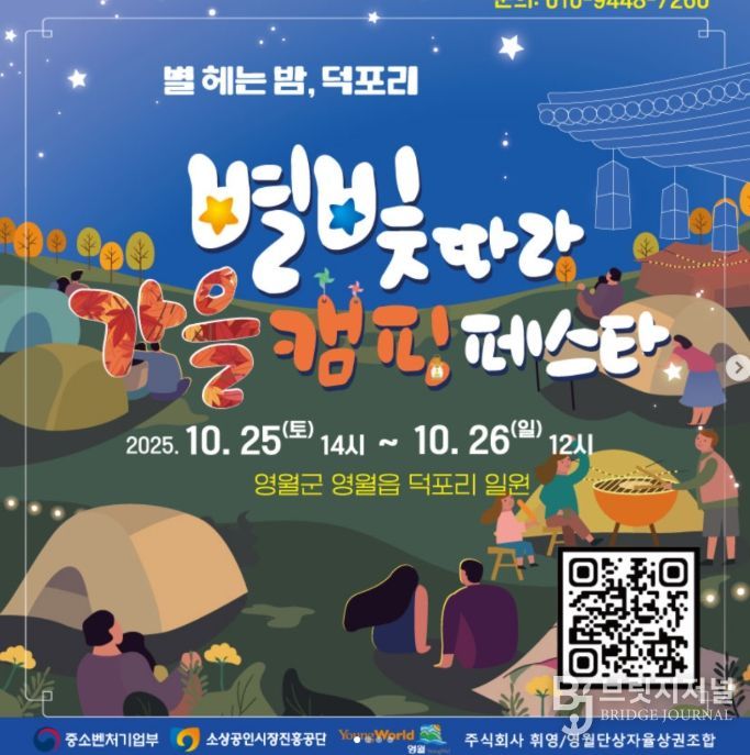 영월군에서 동네상권발전소와 지역상권활력지원사업을 주관하고 있는 주식회사 휘영 관계자는 “이번 ‘별빛따라 가을 캠핑 페스타’는 단순한 축제를 넘어, 캠퍼들에게는 영월의 아름다운 자연 속 잊지 못할 추억을 선사하고, 덕포리 소상공인에게는 새로운 활력을 불어넣기 위해 기획됐다”라며, “참가비 전액을 지역 상품권으로 돌려드리는 만큼, 많은 분이 부담 없이 찾아오셔서 영월의 깊은 가을을 만끽하고 지역 상생의 소중한 가치도 함께 경험해 보시길 바란다”라고 전했다.