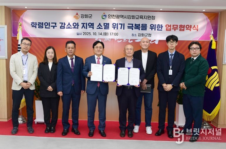 브릿지저널 김경미 기자 | 강화군은 지난 14일, 강화교육지원청과 ‘학령인구 감소 및 지역 소멸 위기 극복을 위한 업무협약’을 체결했다.