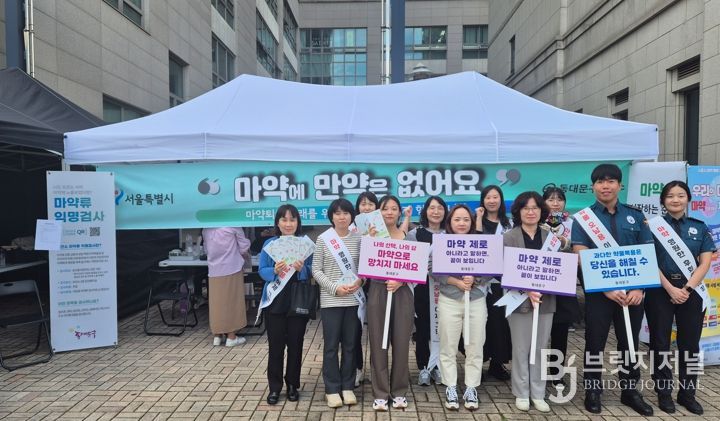 브릿지저널 김경미 기자 | 서울 동대문구는 15일 한국외국어대학교 캠퍼스와 인근 지역에서 ‘마약에 만약은 없어요’를 주제로 청년 대상 체험형 불법 마약류 예방 캠페인을 진행했다.