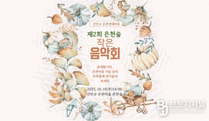 브릿지저널 윤나영 기자 | 진안군은 오는 18일 오후 2시~4시까지 은천생태마을 숲에서 ‘두 번째 은천숲 작은 음악회’가 열린다고 밝혔다.