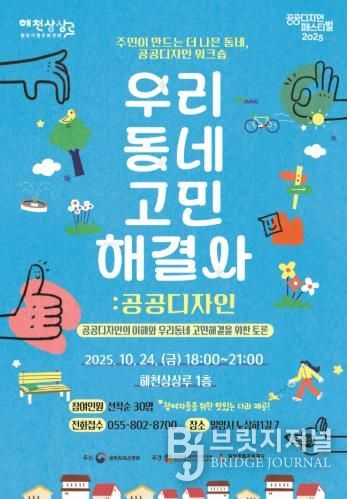 브릿지저널 김경미 기자 | 밀양문화관광재단은 오는 24일 오후 6시 해천상상루에서 ‘우리 동네 고민 해결사, 공공디자인!’ 워크숍을 개최한다고 17일 밝혔다.