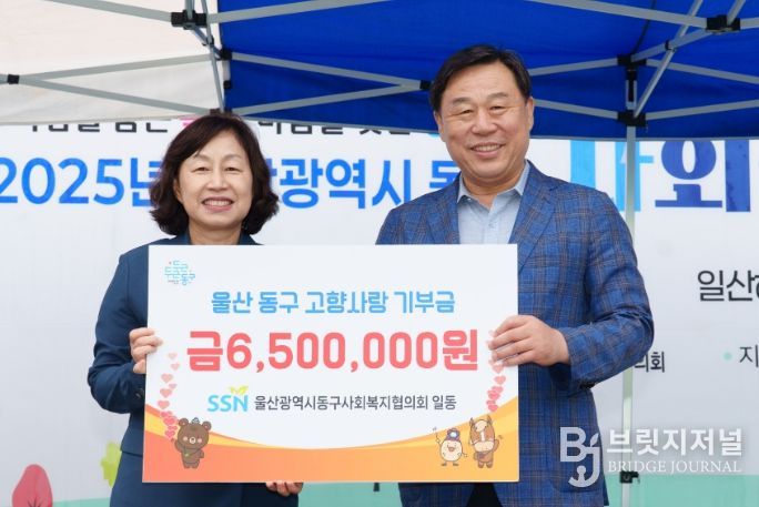 브릿지저널 윤나영 기자 | 울산광역시동구사회복지협의회(회장 이경신)가 10월 18일 오후 3시 일산청년광장에서 열린 동구 사회복지박람회에서 김종훈 동구청장에게 고향사랑기부금 650만 원을 했다.