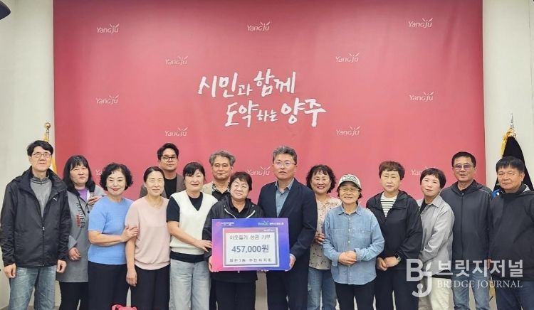 브릿지저널 김경미 기자 | 양주시 회천1동 주민자치회(회장 최태옥)가 최근 어려운 이웃을 돕기 위해 벼룩시장 운영 수익금 전액인 45만7천 원을 회천1동 행정복지센터에 기부했다.