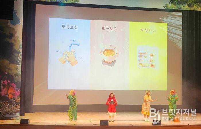 유아들은 공연 속 빨간 모자와 함께‘뽀득’,‘보글’,‘시원’을 외치며 흥겨운 노래와 율동을 따라 하면서 손 씻기, 올바른 식습관, 식중독 예방 등 생활 속 위생 수칙을 즐겁게 배우는 시간을 가졌다.