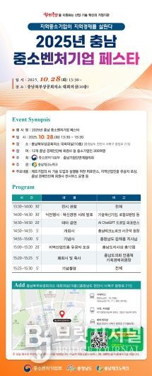 브릿지저널 정보영 기자 | (재)충남테크노파크(원장 서규석)는 도내 중소벤처기업의 혁신 성장과 상생 네트워크 강화를 위해 '2025 충남 중소벤처기업 페스타'를 28일 충남북부상공회의소 10층 대회의실에서 개최한다고 밝혔다.