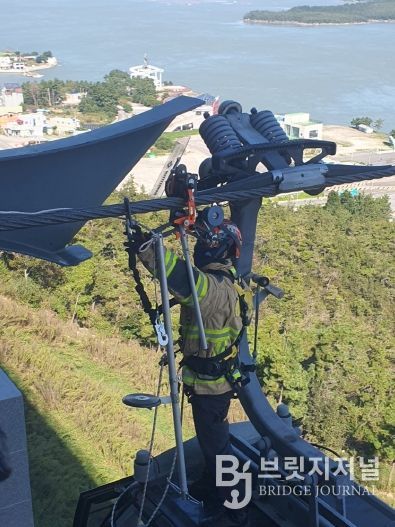 브릿지저널 김경미 기자 | 진도소방서는 10월 20일 명량해상케이블카 진도스테이션에서 삭도시설 민관합동 구조훈련을 실시했다. 이번 훈련은 전국적으로 노후화가 진행 중인 관광용 삭도설비와 최근 증가하는 설치 현황에 대응하기 위해 마련됐다.