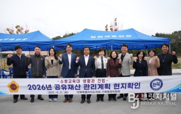 브릿지저널 윤나영 기자 | 전북특별자치도의회 기획행정위원회는 21일 장수군 일원 소방안전타운 내에서 추진 중인 ‘소방교육대 생활관 건립사업’ 현장을 방문해 사업 추진계획과 부지 여건을 점검했다.