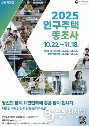 브릿지저널 정보영 기자 | 제주특별자치도와 국가데이터처는 ‘2025 인구주택총조사’를 22일부터 다음달 18일까지 실시한다. 코로나19 이후 처음 진행되는 대규모 표본조사로, 제주에서만 약 6만 3,000가구가 대상이다.
