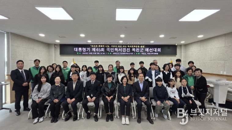 브릿지저널 김경미 기자 | 새마을문고중앙회 옥천군지부(회장 송일환)가 21일, 충북도청 남부출장소 대회의실에서 대통령기 제45회 국민독서경진 옥천군예선대회 시상식을 개최했다.