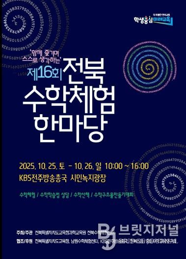 브릿지저널 윤나영 기자 | 전북특별자치도교육청과학교육원은 오는 25~26일 KBS전주방송총국 시민녹지광장에서 ‘제16회 전북수학체험한마당’을 개최한다고 22일 밝혔다.
