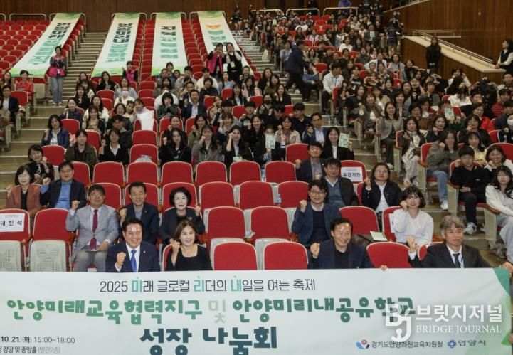 브릿지저널 김경미 기자 | 경기도안양과천교육지원청은 10월 21일 안양시청에서‘지역교육협력을 통한 미래 글로컬 리더의 내일을 여는 축제’를 주제로'2025 안양미래교육협력지구 및 안양미리내공유학교 성장 나눔회'를 열었다.