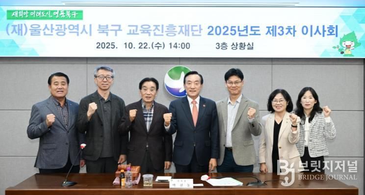 브릿지저널 윤나영 기자 | 울산 북구교육진흥재단은 22일 북구청 상황실에서 제3차 이사회를 열고, 내년도 사업계획 및 예산(안)과 차오름 장학금 지원사업(안) 등을 심의·의결했다.