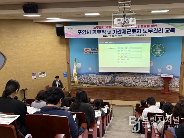 브릿지저널 정보영 기자 | 포항시는 22일 뱃머리평생교육관에서 공무직 및 기간제 근로자의 복무·급여 등 노무관리 업무를 담당하는 공무원 100여 명을 대상으로 ‘노무관리 역량 강화 교육’을 실시했다.