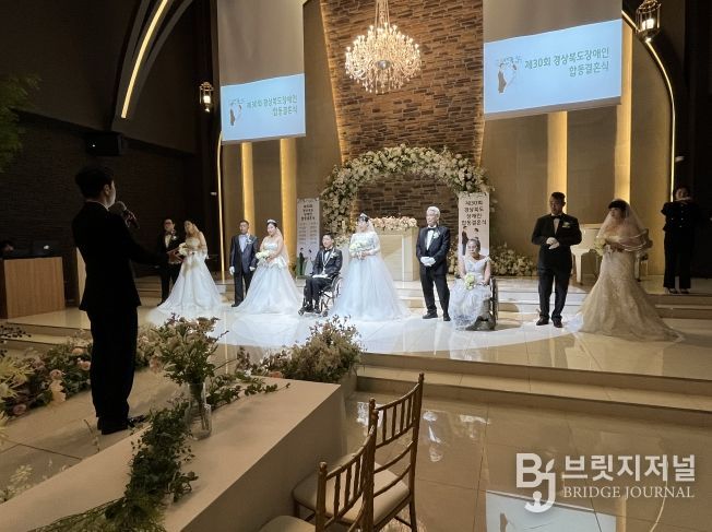 브릿지저널 정보영 기자 | 경상북도는 한국장애인재활협회 경북협회 주관으로 22일 경북 안동 두리원웨딩홀에서 신랑·신부 5쌍과 가족, 친지, 내빈 등 120여 명이 참석한 가운데 ‘제30회 경상북도 장애인 합동결혼식’을 성황리에 개최했다.