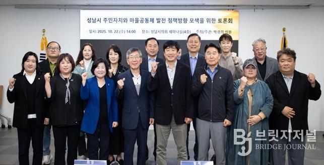 브릿지저널 김경미 기자 | 성남시의회 더불어민주당 박경희 의원(서현1·2)은 10월 22일 성남시의회 4층 세미나실에서 열린 '성남시 주민자치와 마을공동체 발전 정책방향 모색을 위한 토론회'에 토론자로 참여해, 민선 8기 이후 급격히 후퇴한 성남시의 주민자치 정책을 강하게 비판하며 “주민이 주인인 자치의 복원”을 촉구했다.
