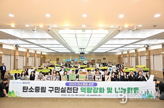 브릿지저널 윤나영 기자 | 울산 중구(구청장 김영길)가 10월 23일 오후 2시 30분 중구청 대회의실에서 ‘2050 탄소중립 구민실천단 역량 강화 및 나눔 활동’을 개최했다.