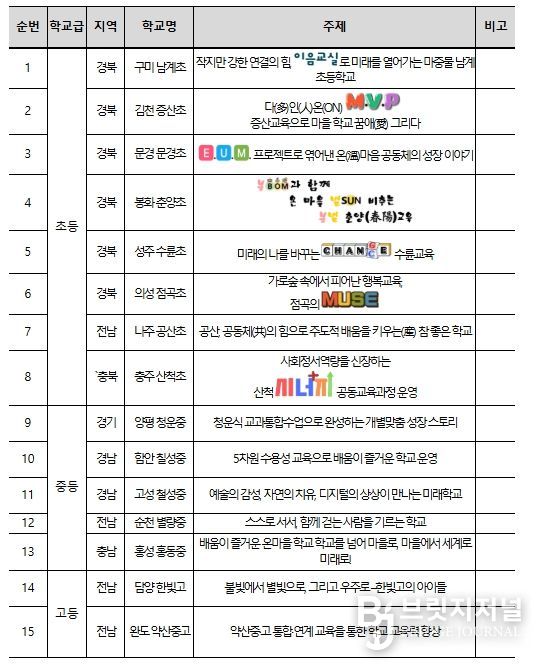 브릿지저널 김경미 기자 | 교육부는 10월 24일, ‘2025 농어촌 참 좋은 학교 공모전’에 15개 학교가 선정됐다고 밝혔다.