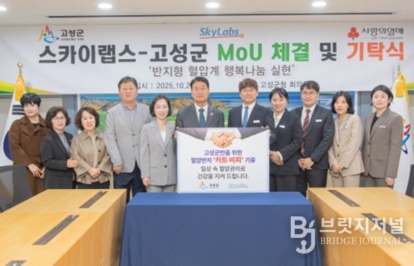 브릿지저널 윤나영 기자 | 평화 경제 거점 도시 강원 고성군은 2025년 10월 21일, 주식회사 스카이랩스와 함께 만성질환(고혈압, 심혈관 질환 등) 의료취약계층 지원을 위한 업무협약을 체결했다.