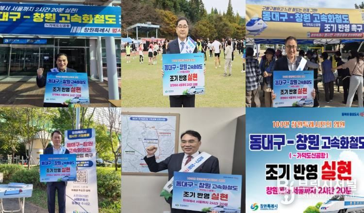 이번 캠페인은 ‘서울–창원 2시간 20분’ 실현을 통해 시민이 체감할 수 있는 교통 혁신과 지역 균형발전의 의미를 널리 알리기 위해 마련된 것으로, 김종양(의창구), 허성무(성산구), 최형두(마산합포구), 윤한홍(마산회원구), 이종욱(진해구) 국회의원 등 5명이 뜻을 모았다.
