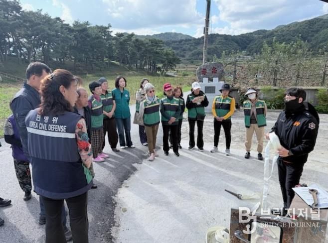 브릿지저널 김경미 기자 | 거창군 위천면은 지난 24일 위천면 원당마을에서 여성민방위기동대, 마을 이장, 주민 등 30여 명이 참석한 가운데 소화전 사용법 교육을 실시했다.