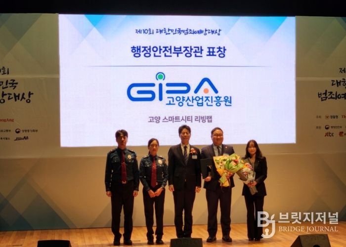 브릿지저널 김경미 기자 | 고양산업진흥원이 고양특례시와 공동 추진한 ‘고양 스마트시티 리빙랩’ 사업으로‘제10회 대한민국 범죄예방대상’ 행정안전부장관상을 수상했다고 29일 밝혔다.