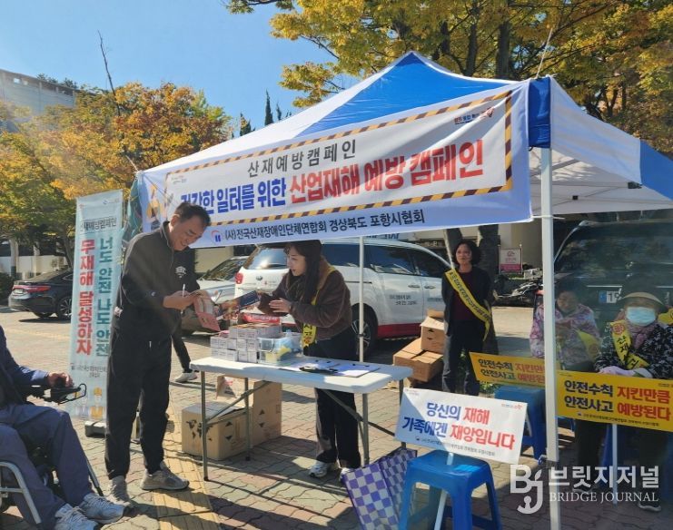 브릿지저널 정보영 기자 | 포항시는 29일 시외버스터미널 광장에서 전국산재장애인단체연합회 경북협회 회원 50여 명과 함께 산업 현장 안전에 대한 시민들의 관심과 참여를 높이기 위한 ‘시민 참여 산업안전 캠페인’을 실시했다.