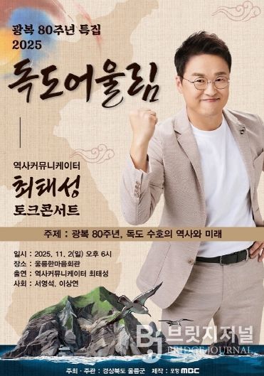 브릿지저널 정보영 기자 | 울릉군은 포항MBC와 광복 80주년을 맞아 오는 11월 2일 오후 6시 울릉군 한마음회관 대공연장에서 2025 독도어울림 “토크콘서트” 행사를 개최한다.