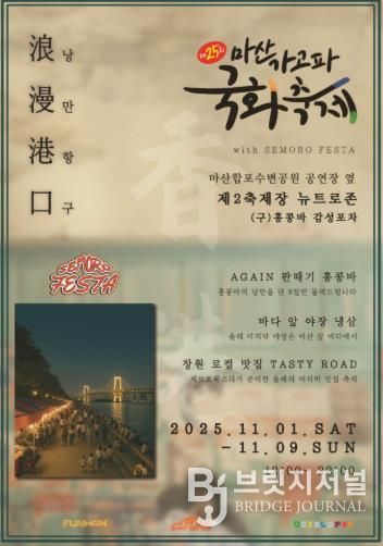브릿지저널 김경미 기자 | 창원특례시는 지역 대표 가을축제인 ‘제25회 마산가고파국화축제’를 11월 1일부터 9일까지 3·15해양누리공원과 합포수변공원 일원에서 개최한다.