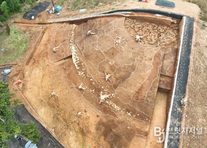 브릿지저널 김경미 기자 | 경상남도는 31일 고성읍 기월리 일원에서 진행 중인 고성 송학동 고분군 14호분 2차 발굴조사 결과, 가야권역 내 최대 규모의 봉분 구조와 정교한 축조공정이 새롭게 밝혀졌다고 밝혔다.