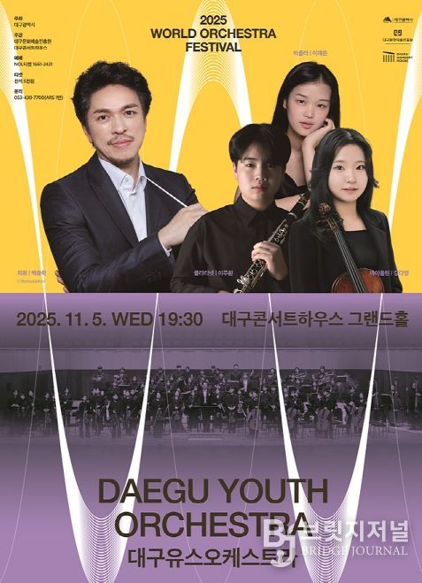 브릿지저널 김진석 기자 | (재)대구문화예술진흥원 대구콘서트하우스는 오는 11월 5일 저녁 7시 30분, 그랜드홀에서 ‘2025 월드오케스트라페스티벌’의 일환으로 대구유스오케스트라의 공연을 개최한다.