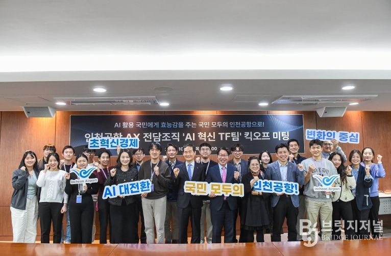 브릿지저널 김경미 기자 | 인천국제공항공사(사장 이학재)는 인천공항 AI 대전환(AX, AI Transformation)을 전담하는 ‘AI 혁신 TF팀’을 발족했다고 31일 밝혔다.