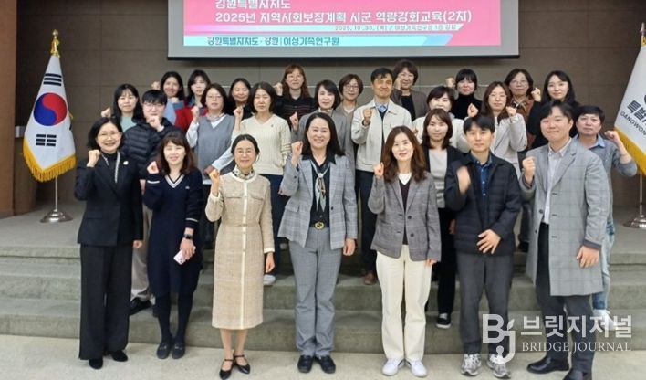 브릿지저널 윤나영 기자 | 강원특별자치도 및 도 여성가족연구원 복지균형지원센터는 10월 30일 본원 강당에서 '2025년 지역사회보장계획 시군 역량강화교육(2차)'를 개최했다.