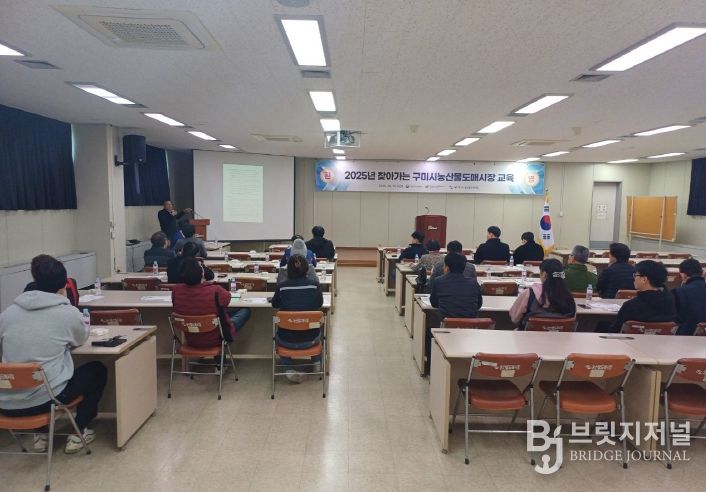 브릿지저널 정보영 기자 | 구미시선산출장소(소장 박은희)는 지난 31일 농산물도매시장 관리동 2층 대회의실에서 법인 임직원 및 중도매인 등 유통종사자 50여명을 대상으로 ‘2025년 농산물도매시장 유통종사자 교육’을 실시했다.